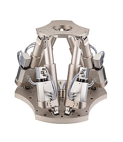 The best dynamic performance is achieved by hexapods with magnetic PIMag® direct drives; they offer velocities of several hundred mm/s and accelerations of up to 4 g. The special design which includes flexure joints completely dispenses with rolling or frictional elements, thus allowing a zero-backlash motion without mechanical noise.