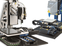 A new hybrid gantry design combines the advantages of air bearings and traditional bearings in to one compact, high performance systems. Operated with state-of-the-art ACS motion controllers, higher accuracy and throughput can be achieved, while programming of complex motion profiles is facilitated with easy to use software. Applications are found in laser machining, 3D printing, photonics, robotics, microscopy, and precision industrial automation applications.