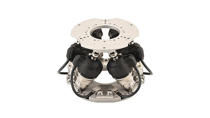 - High-performance actuators: The ballscrew actuators provide low friction and long lifetime, significantly outperforming lead-screw designs used in lower-cost hexapods.
