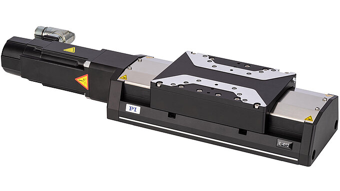 The L-412 ball screw model is equipped with a synchronous servo motor, and can be re-lubricated without disassembly, further extending its high reliability and long lifetime. A cover strip on the side and the purge air connection prevent contamination of the working components by particles. An optional holding brake allows an increase in its usability as a Z axis stage.