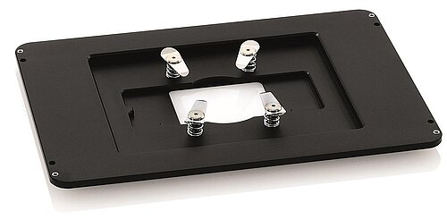 The PInano® P-736 piezo insert Z-scanner is designed as an insert for microscope stages with a 160x110mm standard K-frame opening. It has an aperture of 93x65mm for microscope slides, Petri dishes, etc. A larger version of the P-736 stage with a full size K-frame opening, for well plates etc., is also available.