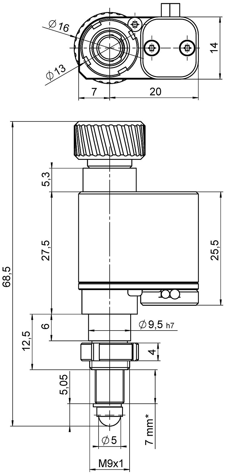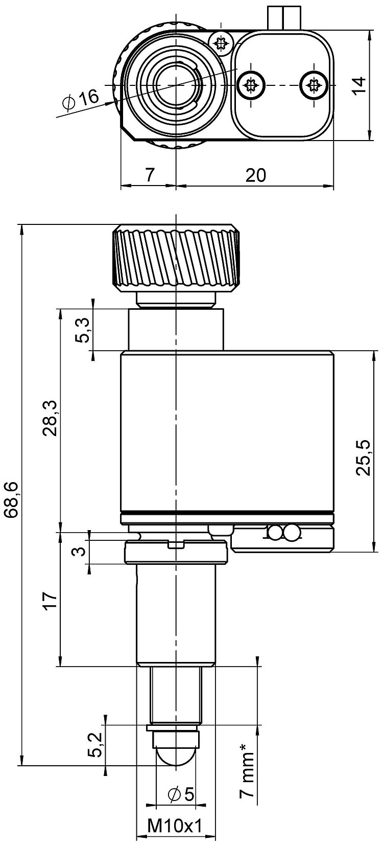 Closed loop PiezoMike linear actuator; piezoelectric inertia drive; 7 mm travel range; M10×1 thread; 22 N feed force; 2 mm/min maximum velocity; 2 m cable length