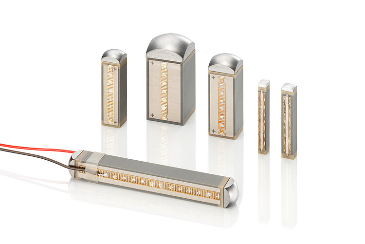 Operating voltage -20 to 120 V. Ceramic insulation, polymer-free. Insensitive to humidity. Excellent temperature stability. UHV-compatible to 10-9 hPa, no outgassing, high bakeout temperature. Ideal for dynamic operation. Flexible thanks to numerous designs. Encapsulated versions for operation in splash water or oil.
