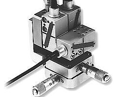 The F-206 multi-axis motorized fiber alignment stage is considerably more compact and accurate than conventional multi-axis stage stacks. Its novel motorized parallel kinematics design (see Principles of Operation) and powerful all-digital controller automatically compensate for unwanted and parasitic motions. It is immune to orthogonality and crosstalk issues that are a formidable assembly and service concern for stacked units.
