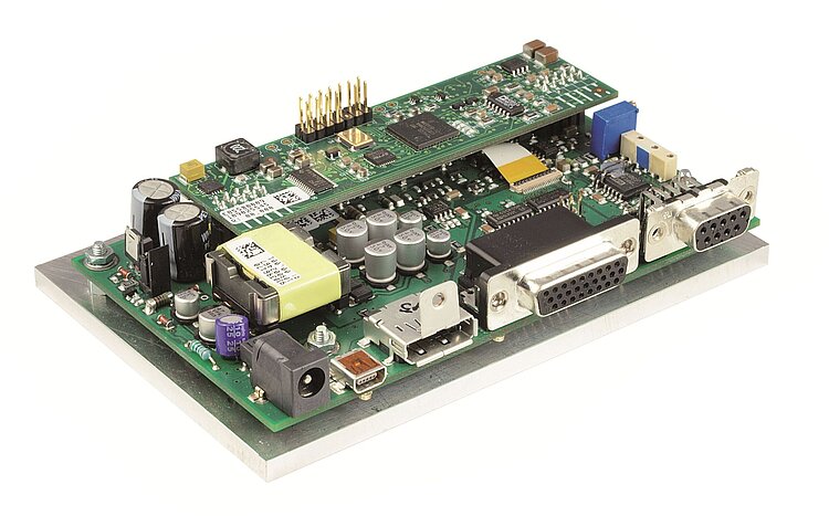 USB, digital RS-232, fast serial interface with up to 25 MBit/s. Additional high-bandwidth analog control input / sensor input. Analog output, e.g., for external amplifiers.