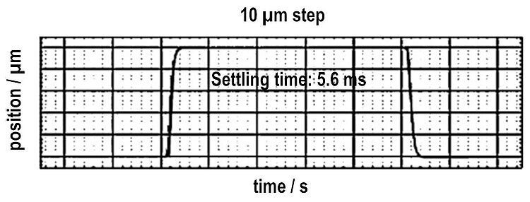 The resolution of the system is limited only by the noise of the amplifier and the measuring technology because PI piezo nanopositioning systems are free of friction.