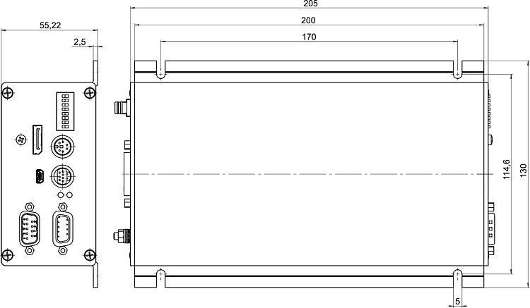 USB-, RS-232-, SPI interface for commanding. I/O lines for automation. Interface for analog joystick. Differentially transmitted A/B signals (TTL) or sin/cos signals (1 Vss). BiSS interface for absolute encoders. Inputs for TTL signals from limit and reference point switches.