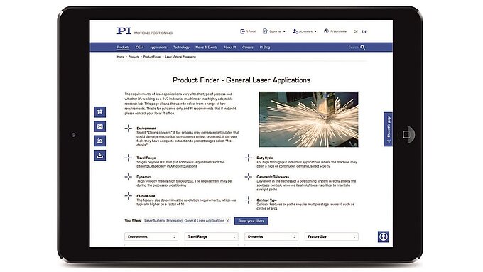 Selection of more criteria expands or shortens the list of results. Select more than one filter at a time, for example, to find positioning stages designed for higher load capacity, too