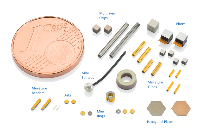 Various basic shapes with round or triangular cross-sections are available, including insulated center holes on benders, chips and stack actuators.