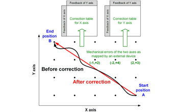 It’s true that air bearings are used in many high speed applications and can achieved speeds >1m/sec, but air bearings are primarily used for their frictionless, smooth, straight motion. Air bearings provide flatness and straightness errors of a few microns over ling travels, which is far better than a typical mechanical bearing stage. Air bearings are also excellent for slow-speed scanning applications where velocity control and following error can be difficult to meet with a mechanical solution. Air bearing stages offer many of the advantages of piezo-flexure stages, but at much larger travels.